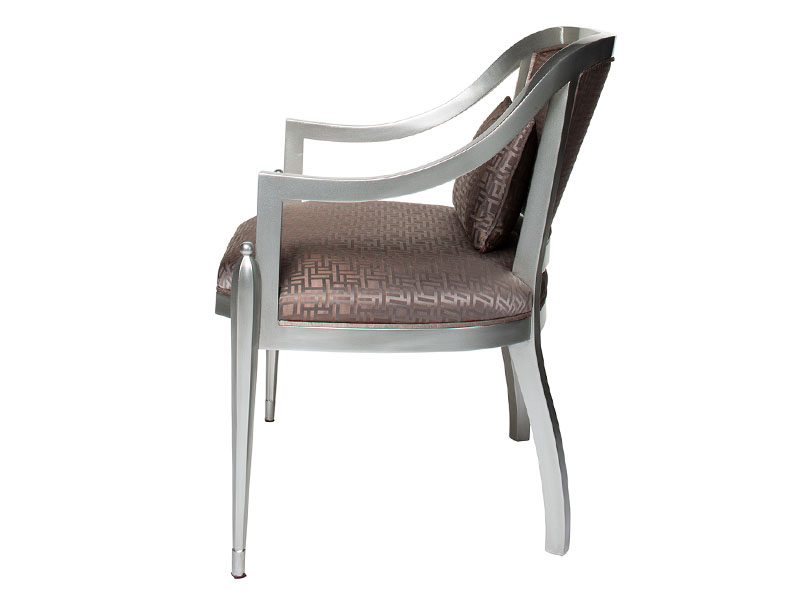 ÜRÜN AÇIKLAMASI:Zarif ve çekici bir ayakkabı topuğundan esinlenerek tasarlanan gümüş renk, saten kumaş yanı pencereli koltuk.