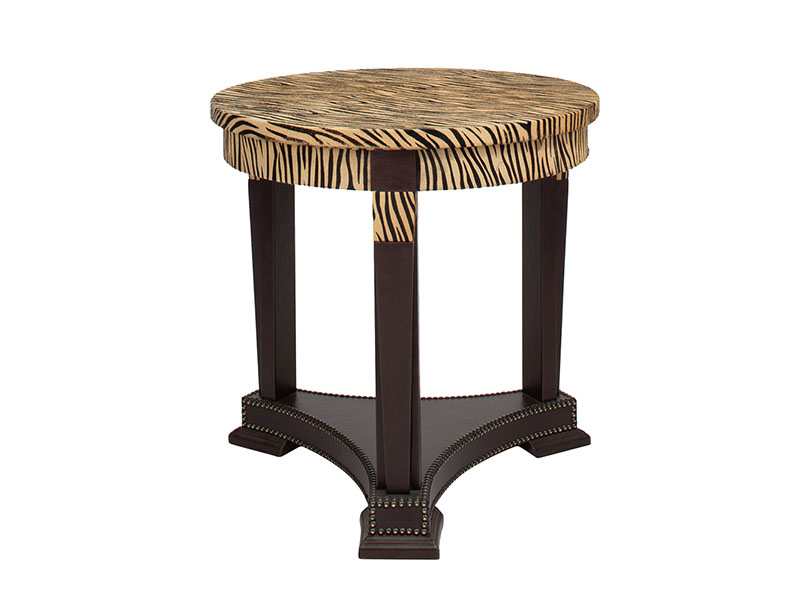 Üzeri tüylü deri, ayaklar ahşap yan sehpa